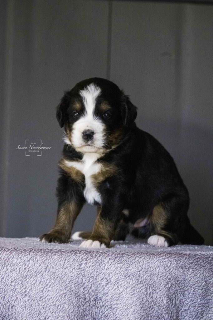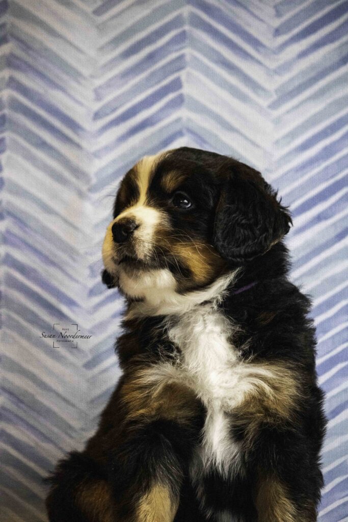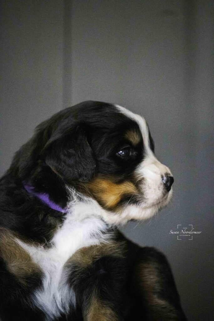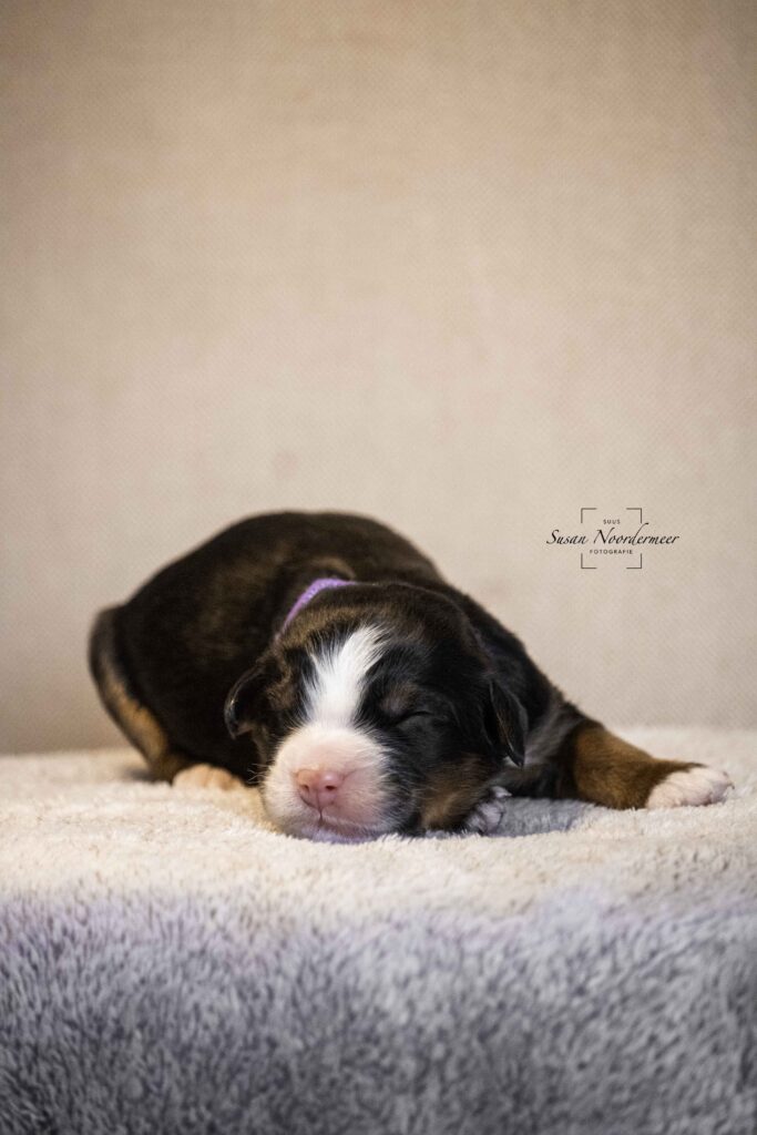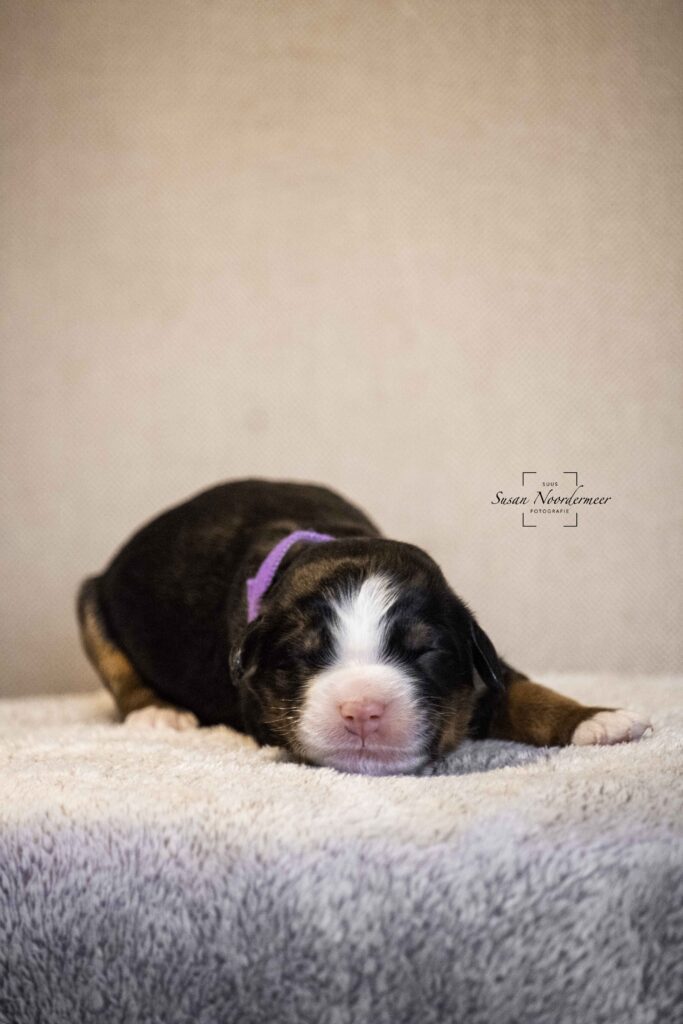 Bekijk hier de foto’s van Surprise, de pup met het paarse bandje uit het nest van oktober 2024.