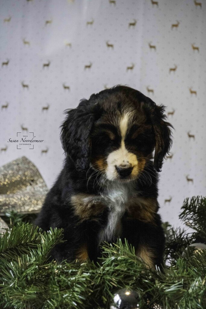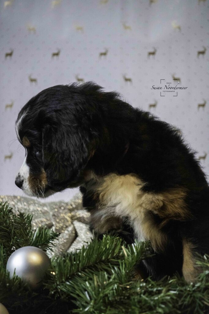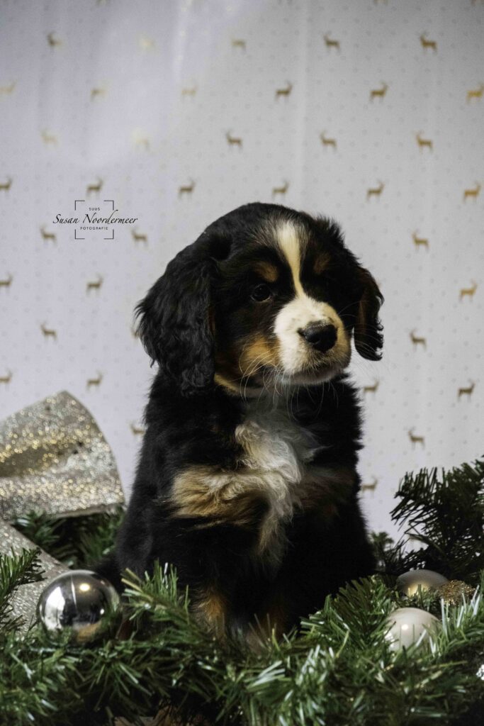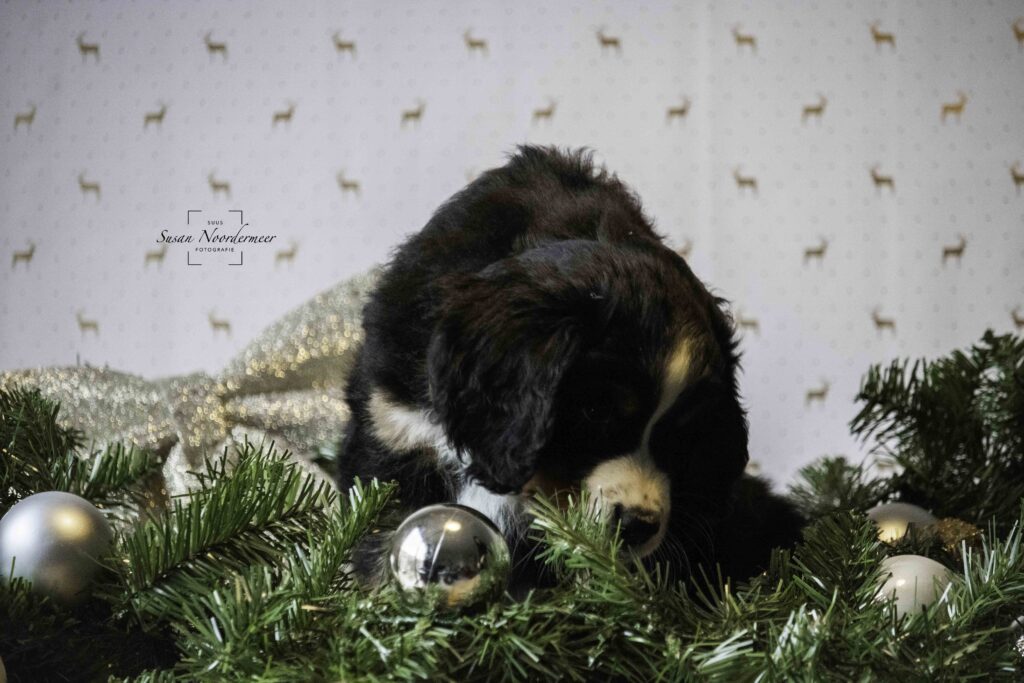 Op vrijdag 22 november 2024 zijn de pups 7 weken oud. Volgende week mogen ze het nest verlaten, maar voordat ze de wereld mogen gaan verkennen bij hun nieuwe baasjes is het nog even foto-tijd. Dit keer in kerstthema, want de feestmaand december komt er weer aan!